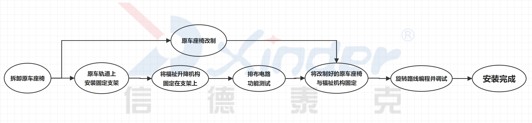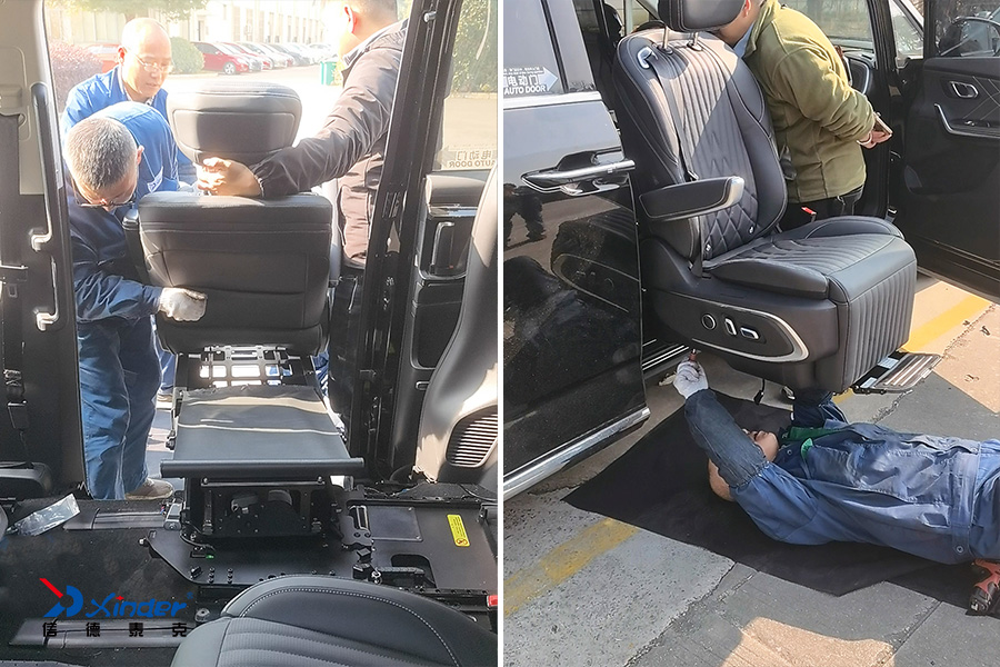 從上述流程可以看出福祉座椅的安裝確實很復(fù)雜,涉及到座椅的拆卸安裝、座椅改制、機構(gòu)安裝調(diào)試、路線編程、電路排布等,但是如果用一句話簡單概括就是:拆下原車座椅后在底部安裝上福祉機構(gòu)后再安裝回去。同時也能看出,整個改裝流程中沒有打孔、切割,都是在原車座椅的基礎(chǔ)上進(jìn)行改裝的,所以不會對車體有任何損傷。