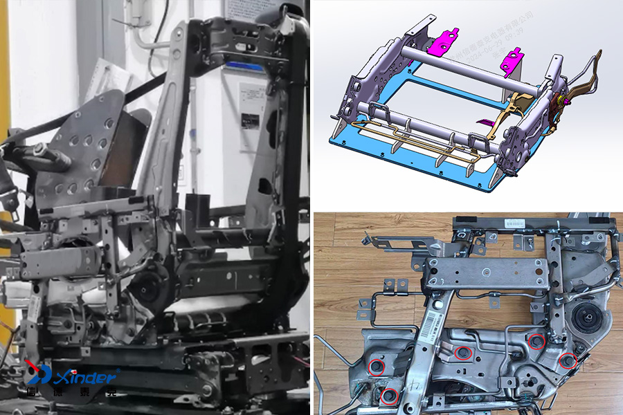 1. 改制原車座椅 原車座椅拆下后進(jìn)行分解,將座椅骨架分離并對底座進(jìn)行改制,使用金屬加工技術(shù)重新設(shè)計并制作底板,再將底板與底座骨架通過焊接方式牢固連接,通過安全測試后重組座椅
