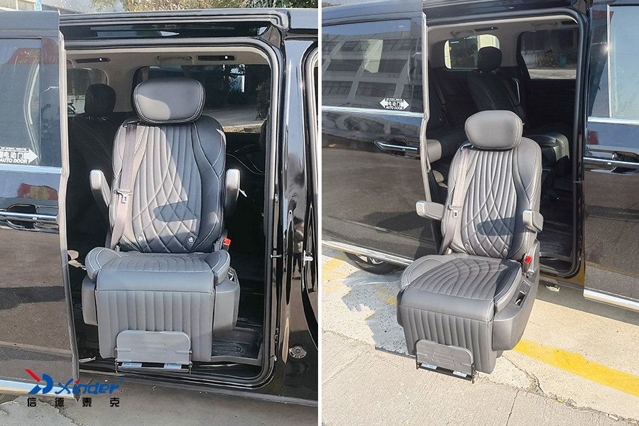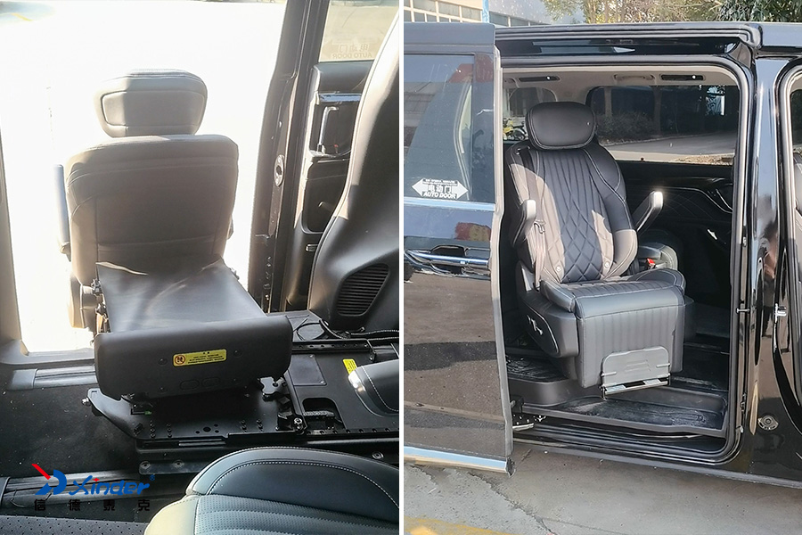 其次就是轎車和SUV車型,一般在副駕改裝。轎車和SUV的空間和MPV相比會小很多,而且因為是直開門,需要座椅旋轉(zhuǎn)更大的角度才能伸出。由于后排處于后輪上方突起位置,妨礙了座椅旋轉(zhuǎn),后備箱也會阻擋座椅運動,所以前排副駕反而更適合改裝。