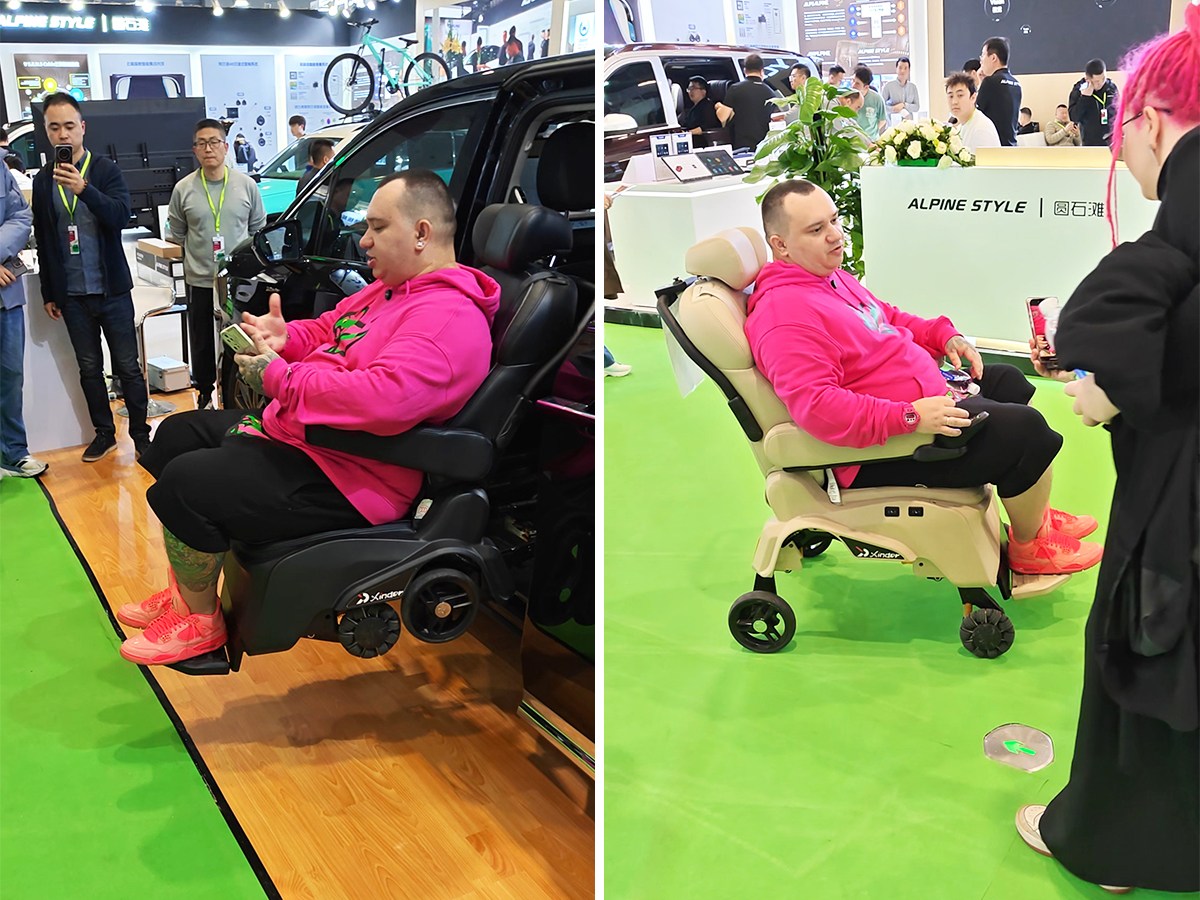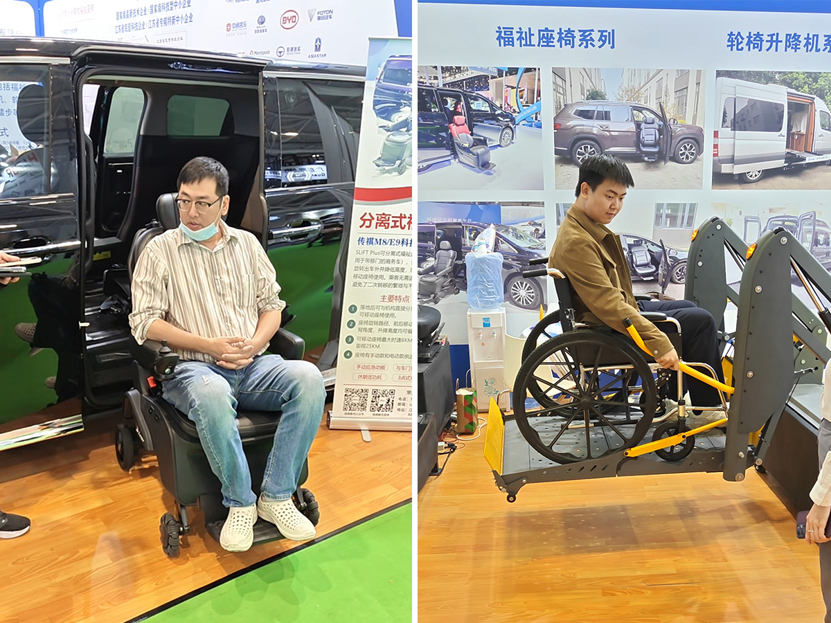 在10號館內,各種各類的汽車產品遍布各個展位,但是我們展品相比下毫不遜色,依然吸引了大批觀眾前來參觀體驗,其中不乏很多國際觀眾。特別是我們的分離式福祉座椅,即使放眼全球,也是非常亮眼且特殊的存在。