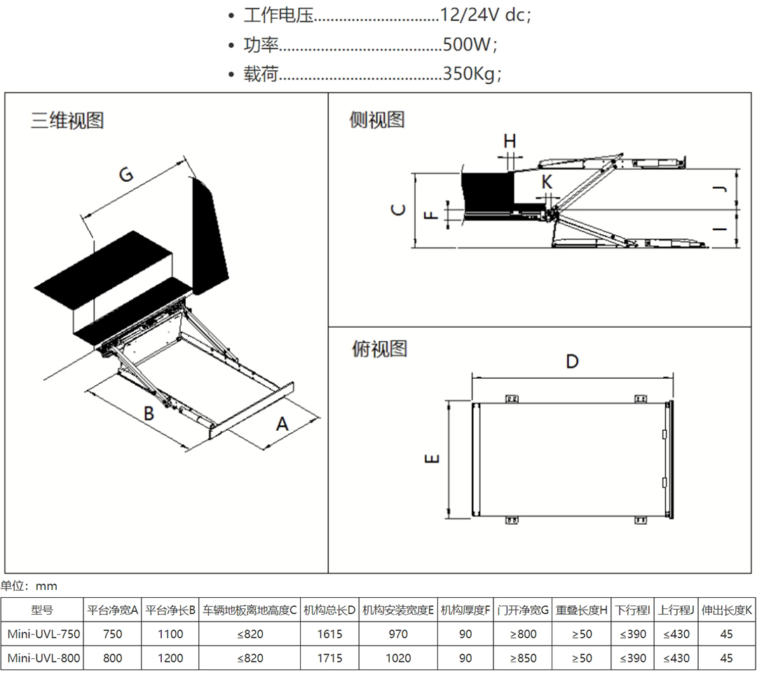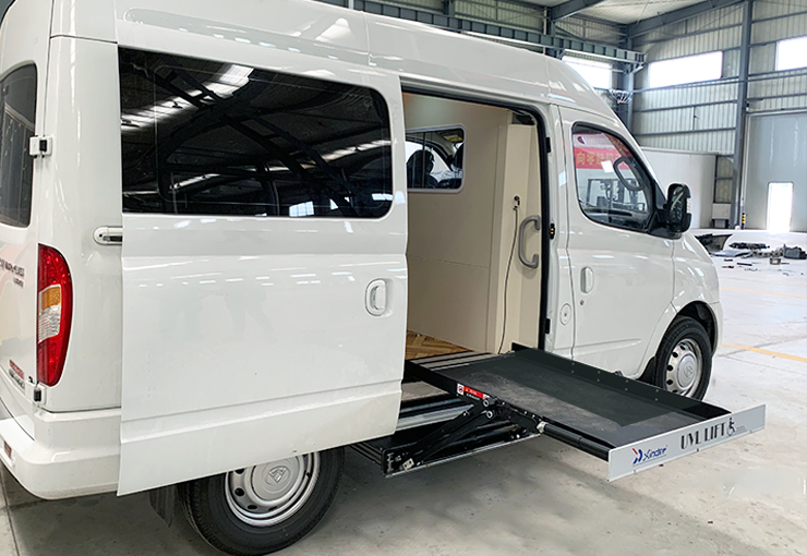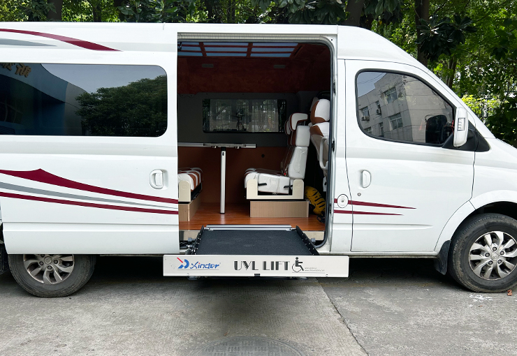 Mini-UVL輕型升降機,安裝在車輛側(cè)門的底盤下,不影響車門通過性,不占用車內(nèi)空間,不影響乘客及司機視線。