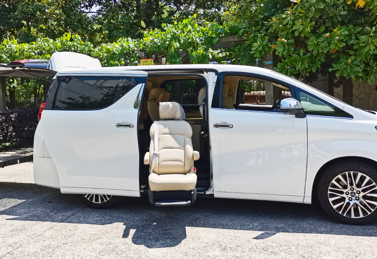 可旋轉(zhuǎn)出車外并降低390mm,車外即可落坐上車