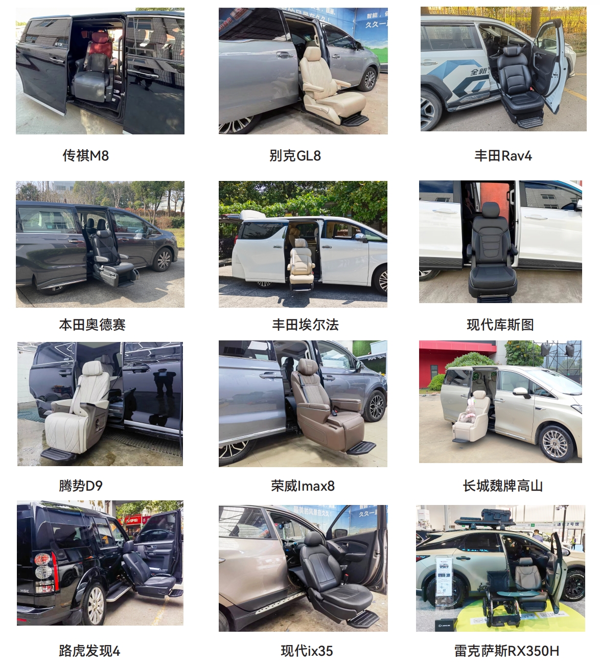 使用原車座椅改裝福祉機(jī)構(gòu),不改變內(nèi)飾;原座椅孔位安裝,不切割,不打孔,不損傷車體