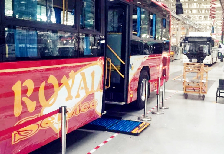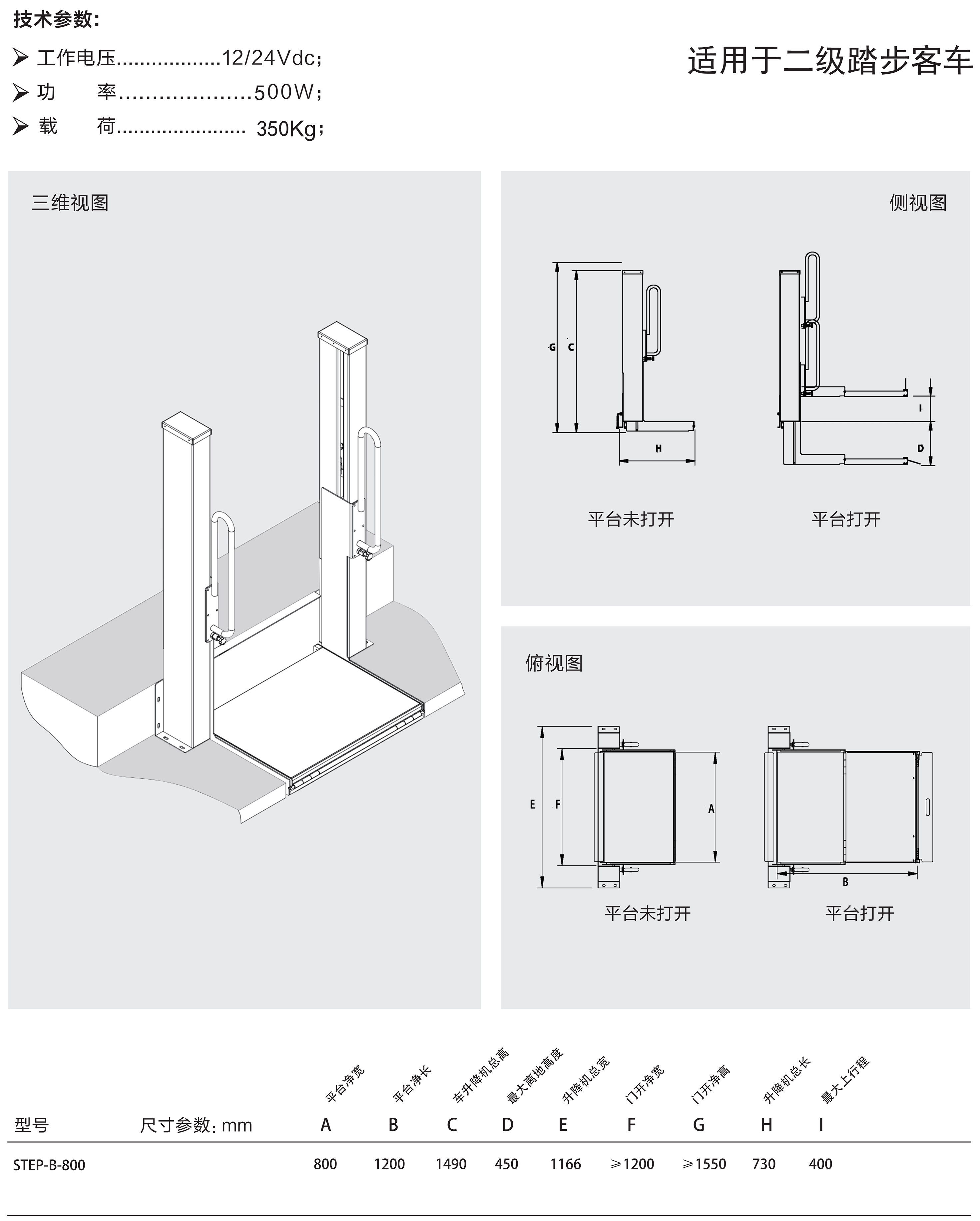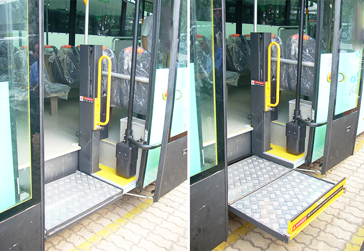 該產(chǎn)品采用與車輛配套式設(shè)計(jì),可安裝在車輛中門或后門,平時(shí)可作為踏步使用(車輛在該門處無須制作踏步),不會(huì)對(duì)乘客正常上、下車造成障礙,不影響視線,不占用車內(nèi)空間。