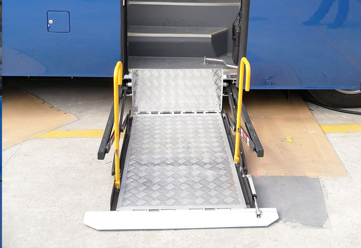 該輪椅升降裝置采用電動-液動操縱方式,主要功能為方便殘疾人或其它需要幫助之人進出車輛。