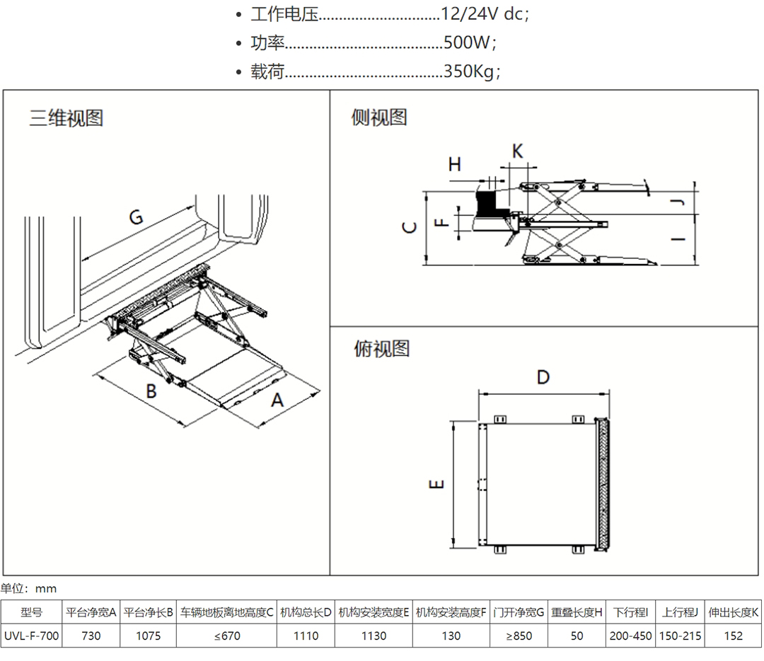 UVL-F-700升降機(jī)是為商務(wù)車的尾門開發(fā)研制。此款升降機(jī)的安裝深度僅1085mm,恰好利用車輛尾部的安裝空間。
