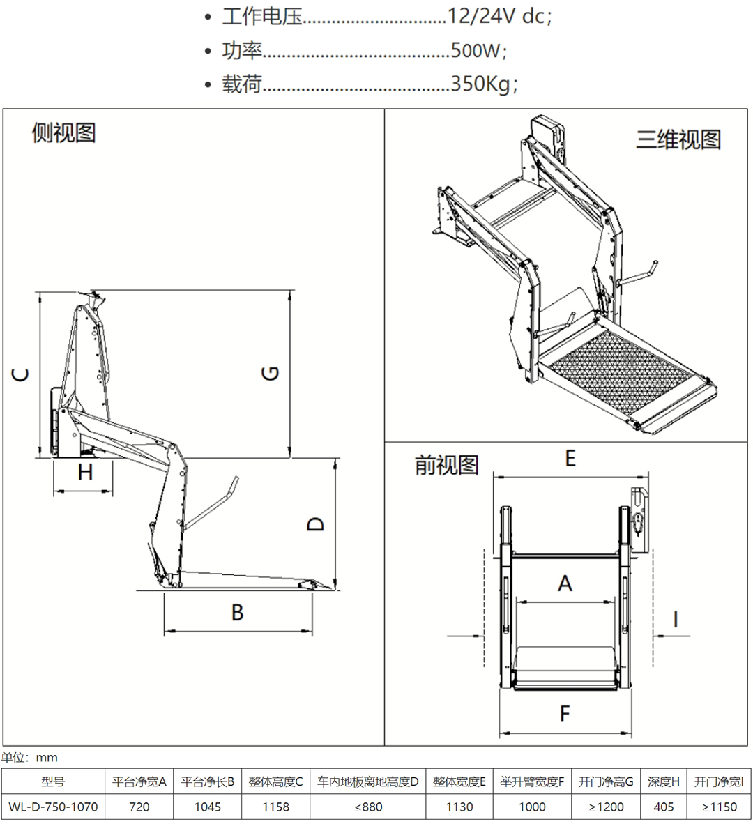此型號升降機可應用于大通G10、大通G20、江淮M3、江淮M4、江淮M5、GMC、奔馳威霆、奔馳維亞諾等;