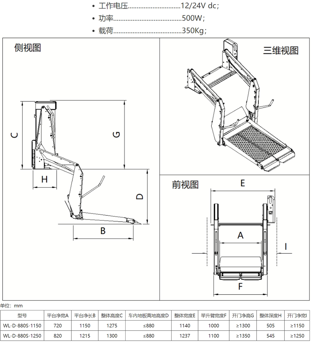 WL-D系列雙臂輪椅升降機(jī)為您無障礙出行提供解決方案,多用于商務(wù)車的側(cè)門或尾門。對于需要安裝升降機(jī)的校車,可建議安裝在尾門。
