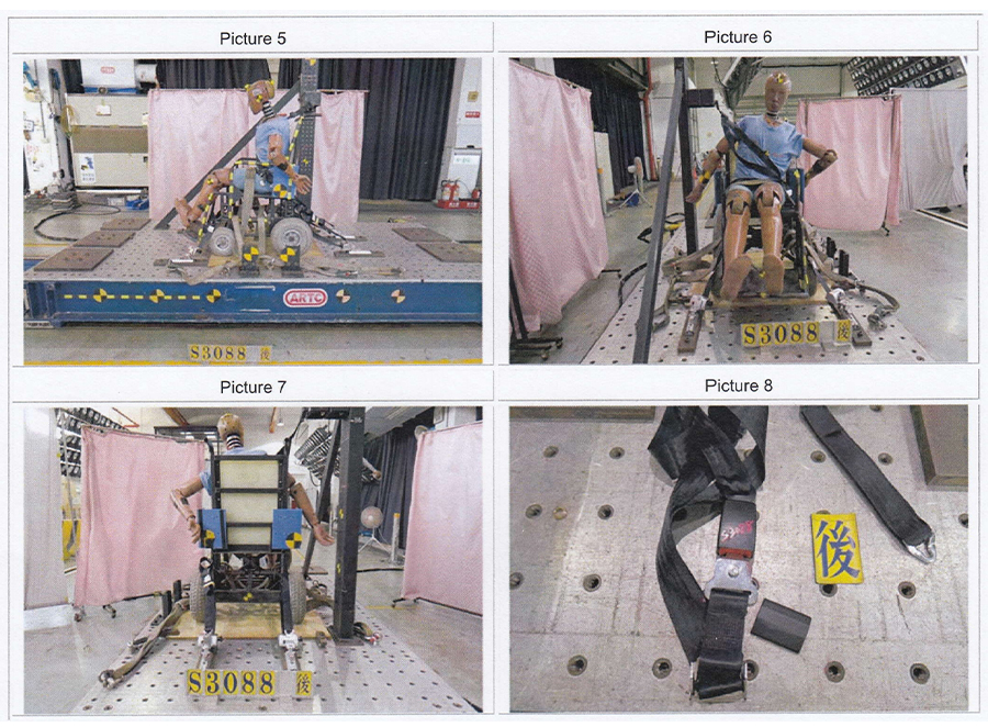 該裝置通過(guò)權(quán)威測(cè)試機(jī)構(gòu)的全動(dòng)態(tài)測(cè)試,滿足ISO 10542-1:2012(殘疾人或行動(dòng)障礙人用技術(shù)設(shè)備和輔助裝置--輪椅系固裝置和乘員安全束護(hù)系統(tǒng)--第1部分:整體系統(tǒng)要求和試驗(yàn)方法)的所有測(cè)試要求。