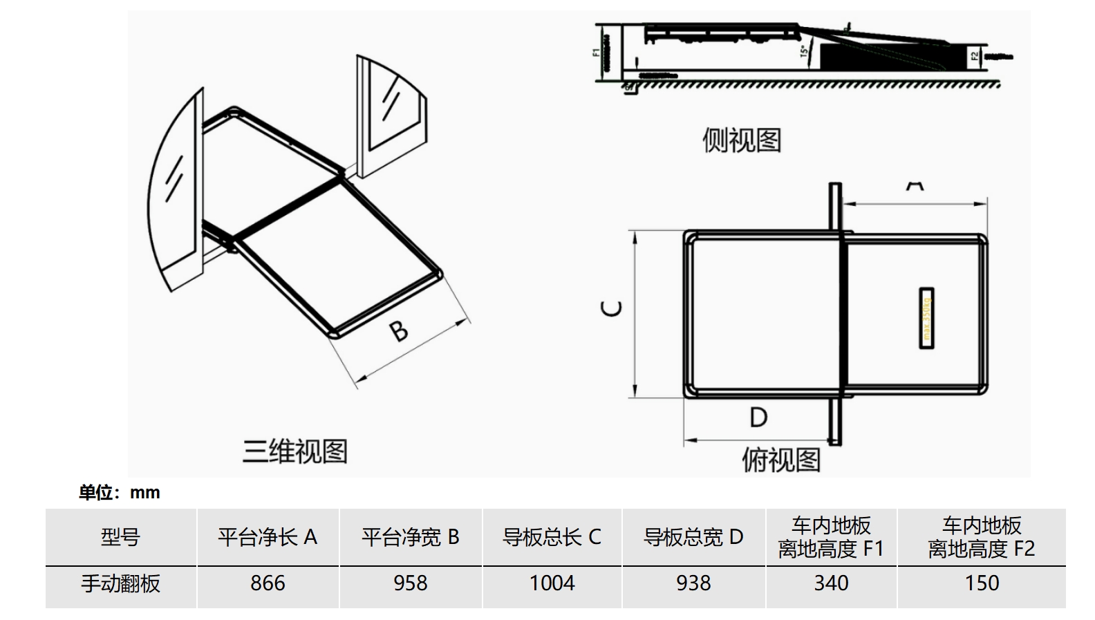 平臺防滑:伸縮導(dǎo)板和翻轉(zhuǎn)導(dǎo)板表面均采用3M黑色防滑貼,磨料礦砂顆粒提供穩(wěn)定的防滑表面;
